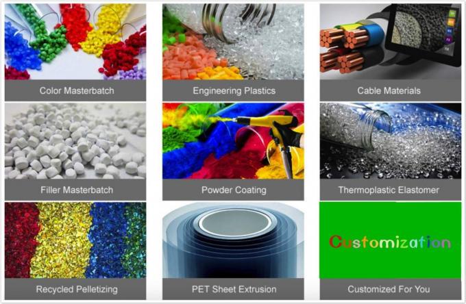 | Colored machine pellets | PE,PP,ABS,AS,PA,EVA,PET +pigment and auxiliary |